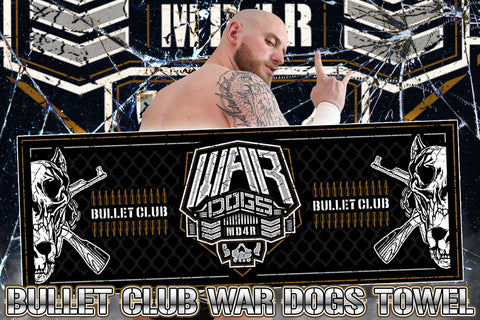 Featuring the unit name WAR DOGS, the phrase MD4R, and the BULLET CLUB logo in a stylish emblem design 🛡️🔥. On both sides, the WAR DOGS unit logo and BULLET CLUB text are displayed for a bold, eye-catching look.
