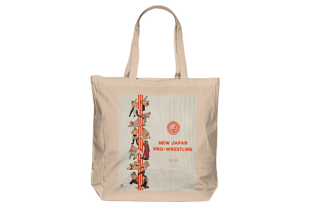 A special tote bag featuring **New Japan Pro-Wrestling wrestlers illustrated in a traditional Japanese painting style is here!