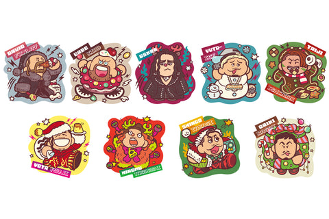 Rendered in warm, winter-inspired colors, the wrestlers are illustrated with a soft, friendly touch, each dressed up to celebrate Christmas in high spirits āļøāØ