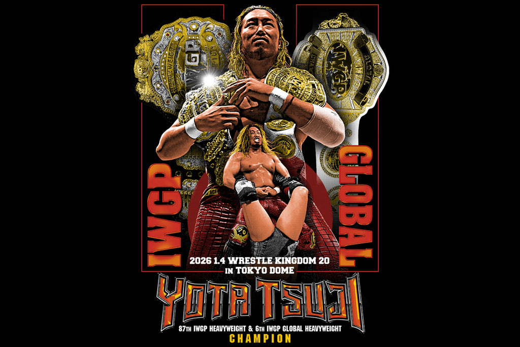 Yota Tsuji T-shirt commemorating his winning of both the IWGP Heavyweight and IWGP Global Championships